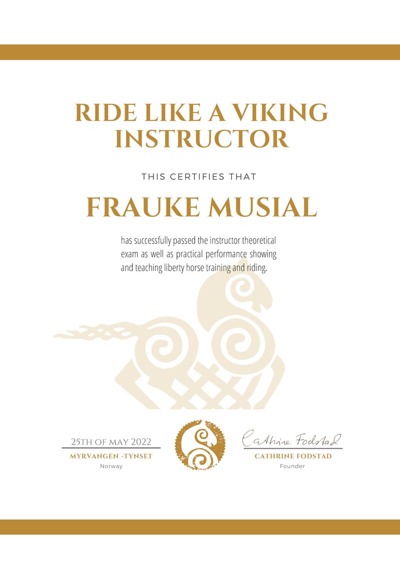 Wer daran interessiert ist zu sehen, wie ich meine Pferde nach den „Ride like a Viking“-Prinzipien ausbilde, kann sich hier die Videos (in Englisch) des praktischen Teils des Trainer und Ausbilder Zertifikats anschauen.